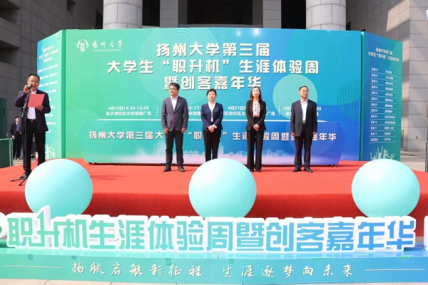 4月19日至22日,学校举办第三届大学生“职升机”生涯体验周暨第12期创客嘉年华系列活动,副校长蔡颖蔚出席开幕式并讲话。