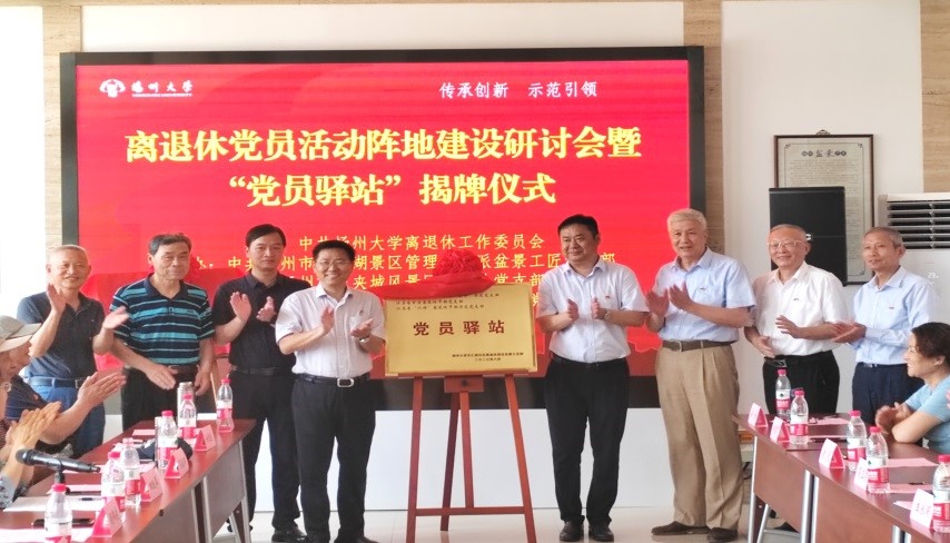 6月14日,由我校离退休党工委主办的离退休党员活动阵地建设研讨会暨示范党支部“党员驿站”揭牌仪式在瘦西湖风景区扬派盆景博物馆研习所举行。