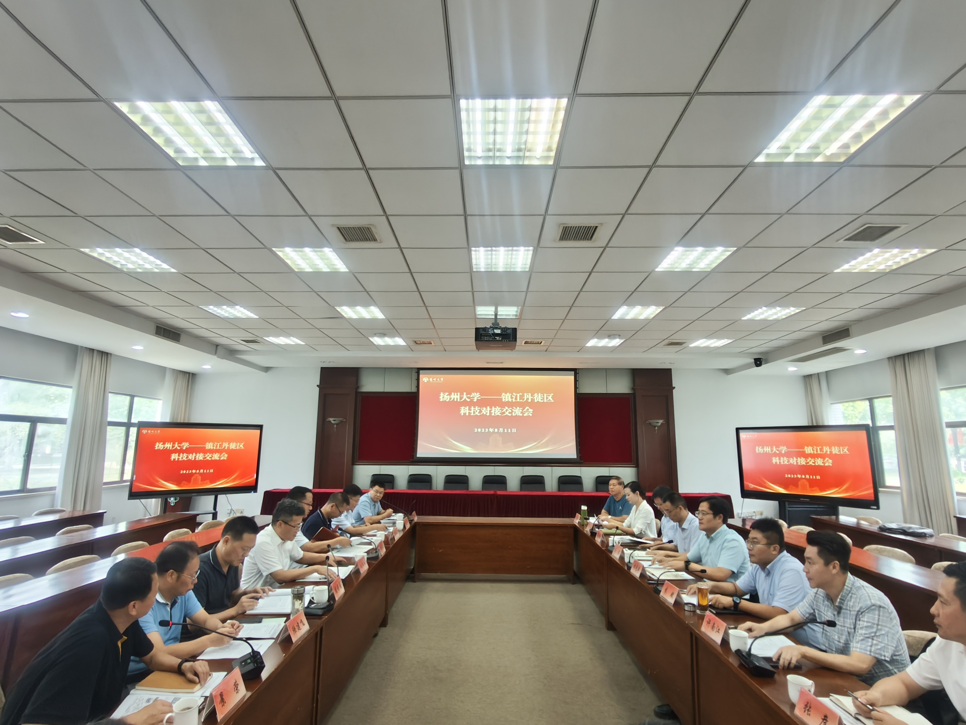 8月11日,镇江市丹徒区副区长胡光亮一行来我校开展产学研合作对接交流,副校长赵文明出席会议。