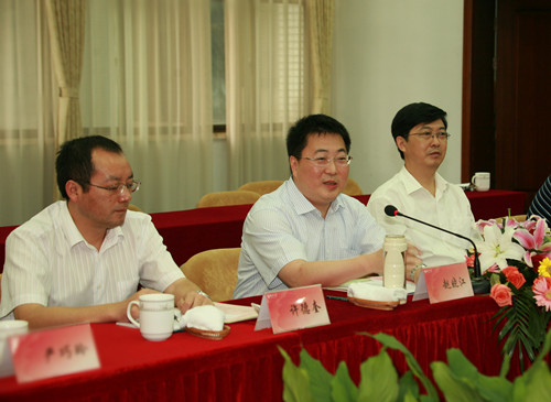 调研座谈会在校行政楼一楼报告举行。校党委书记夏锦文致欢迎辞。校长焦新安介绍了学校改革发展的有关情况。副校长范健主持会议。副校长叶柏森,扬州市委副秘书长、农工办主任黄为民出席会议。