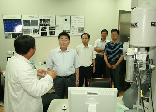 座谈会前,赵晓江一行在焦新安、范健等校领导的陪同下,考察了测试中心大型仪器实验共享平台以及兽医学院、农学院重点实验室等。