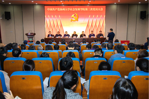 11月27日,社会发展学院第三次党员大会在瘦西湖校区新教学楼四楼报告厅召开。校党委常委、副校长洪涛出席大会并讲话。