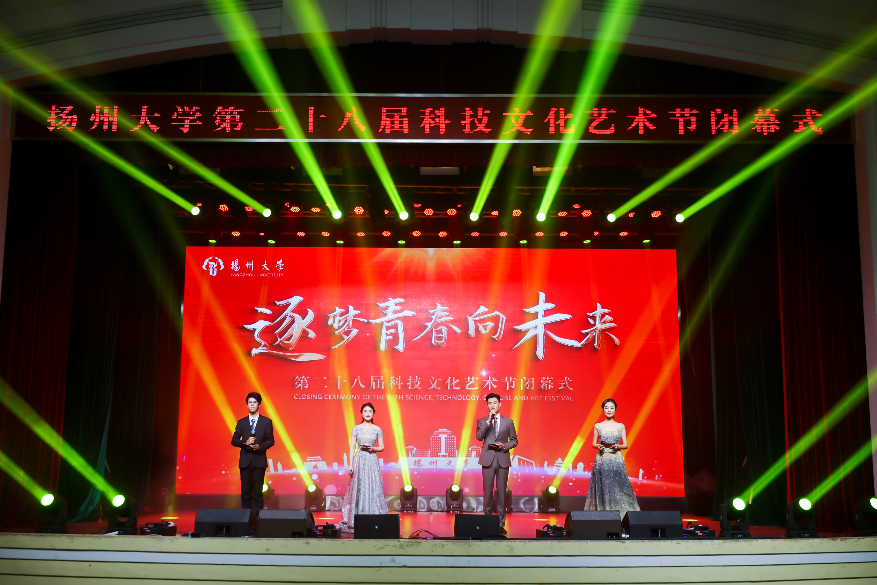 活动以“逐梦青春向未来”为主题,共分为“逐梦扬帆”“青春破浪”“未来已来”三大篇章。通过歌曲表演、舞蹈、朗诵、小合唱、音诗画、器乐演奏等多种形式,展现了我校师生在社会实践、思想成长、学术科技、文体艺术等方面的优异成绩。现场推出了青春MV《奔向青春奔向你》和主题微电影《追光》,展现出一批批扬大学子志存高远、勇往无前的精神风貌。