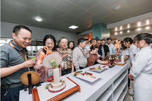 活动期间,来自美国、澳大利亚、法国等海内外侨商侨领代表团走进我校中餐繁荣基地,认真听取了基地详细介绍,观摩烹饪机器人菜肴制作和中餐传统烹饪技艺表演,沉浸式体验经典淮扬菜技艺展示。
