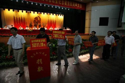 郭荣强调,重温党走过的88年的光辉历程,我们要牢记历史和时代赋予我们的光荣使命,要把深入学习贯彻科学发展观活动与本职工作结合起来,与加快学校“两个转变”结合起来,与培养高素质创新人才结合起来,弘扬改革精神,坚持科学发展,构建和谐校园,实现“两个转变”,以出色的工作和优异的成绩迎接新中国成立60周年。
