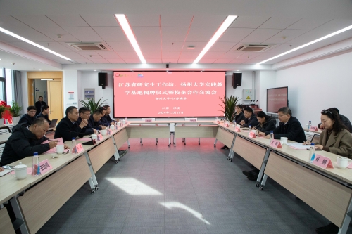 12月19日,“扬州大学—江苏高养”江苏省研究生工作站、扬州大学实践教学基地揭牌仪式暨校企合作交流会在淮安举行。副校长刘巧泉,江苏高速公路养护工程有限公司党委书记、董事长毕连居出席会议并共同为工作站揭牌。