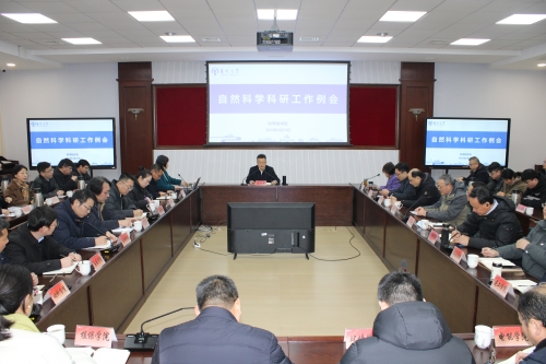 2月25日,学校在荷花池校区行政楼一楼报告厅召开自然科学科研工作例会。副校长赵文明主持会议并讲话。