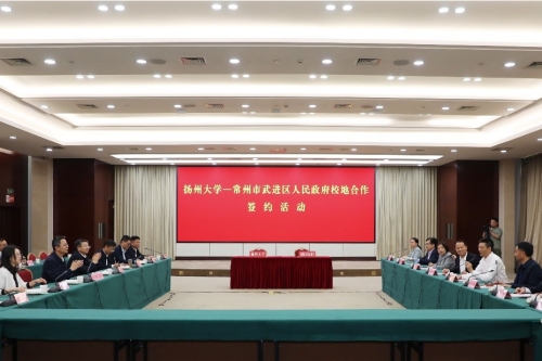 4月17日,扬州大学与常州市武进区人民政府校地合作签约仪式在武进区行政中心举行。副校长王承堂,武进区委常委、组织部部长胡泊,副区长朱小平等出席活动,共同签署《常州粳稻种业发展创新中心项目协议》《定向培养本科生合作协议》,深化产学研融合,助力区域高质量发展。