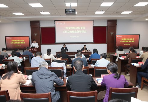 4月24日,学校在行政楼一楼报告厅举行二级党组织纪检委员工作交流暨业务培训会。校纪委书记、派驻监察专员邱庆峰到会讲话。