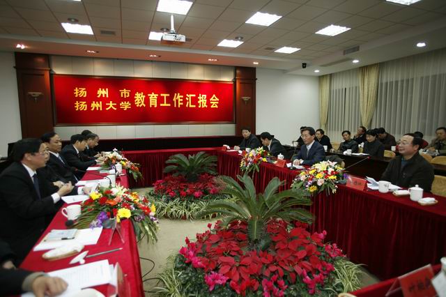 在行政楼一楼报告厅举行的汇报会上,陈章龙汇报了学校改革发展的有关情况和当前的主要工作。曹卫星对学校事业发展取得的显著成效给予了充分肯定,他希望学校合理调整校区功能,进一步统筹整合资源,实现协调发展,提高办学效益;重视创新、创业型人才的培养,在专业体系、结构、模式以及实践训练等方面进行创新,培养具有扎实的基础知识、良好的动手能力以及自我发展能力的高素质人才;要充分发挥学科、专业优势,积极探索产学研新模式,不断加强技术创新,促进成果转化,使科技的创新力和产业的发展更好地融合,为区域经济社会发展提供有力的支撑;加强学科和专业建设要突出重点,兼顾一般,构建高地,打造高峰,形成标志性成果,重视杰出人才、领军人才队伍建设,打造高端科技创新平台,获得一批重大项目和成果,扩大学校知名度和影响力,提升学校核心竞争力。积极探索建立现代大学管理制度,在民主集中制前提下,构建政治权力、行政权力和学术权力三者规范有序运行的现代大学管理制度,使学校更具活力和品位。他希望学校以更大的力度,锐意进取,开拓创新,推动事业又好又快发展,为江苏高校的改革和发展起到示范和引领作用。