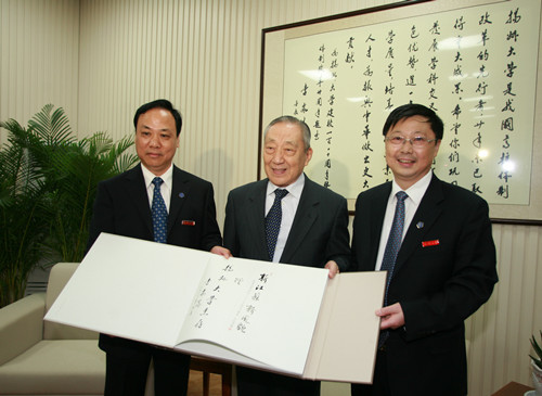 参观结束后,李岚清对我校改革发展作重要指示。首先,他深情回顾了我国教育体制改革情况和我校合并办学的实践。他说:“扬大是全国最早进行高教管理体制改革的高校,是我来的次数比较多的高校。这次来,主要是祝贺你们校庆。”“20年前,我发现了扬州大学的改革。扬大给全国带了个好头,扬大的实践为我国高教管理体制改革提供了经验。这有着重大意义,将会在中国的高等教育史上留下浓墨重彩的一笔。”他希望我校认真总结合并办学经验,继续弘扬改革精神,不断创新发展措施,进一步提升实力,早日建成高水平大学。他再次强调,名教授一定要给本科生上课,扬大是做得好的。这对学生素质的提高、品格的培养大有益处。