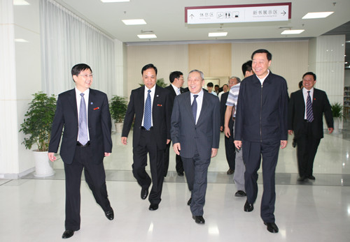 随后,李岚清又参观了我校改革发展情况汇报展、扬泰文化研究成果展、教职工书画作品展、教职工著作展览,听取了党委书记陈章龙、校长郭荣的情况介绍。李岚清同志对我校合并办学20年取得的各项成果表示充分肯定和赞许。