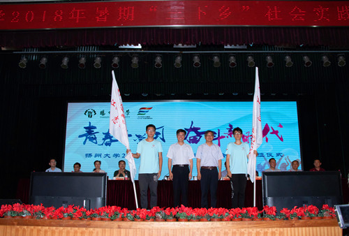 叶柏森在讲话中勉励广大青年学生,在实践中“立大德”,争做有理想的时代青年;在实践中“育大智”,争做有本领的时代青年;在实践中“弘大气”,争做有担当的时代青年。叶柏森要求,相关职能部门、各级党团组织要精心组织实施,强化联系指导,做好安全保障,形成育人合力,扎实推动实践育人。刘祖汉宣布我校2018年暑期社会实践活动出征。
