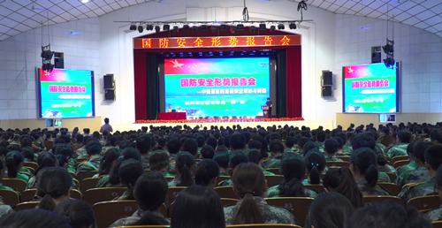 9月12日下午,学校在文汇路校区大礼堂举行国防安全形势报告会,扬州军分区司令员郦斌大校应邀为师生作题为“中国周边安全威胁与挑战”的专题报告。校党委副书记叶柏森主持报告会。