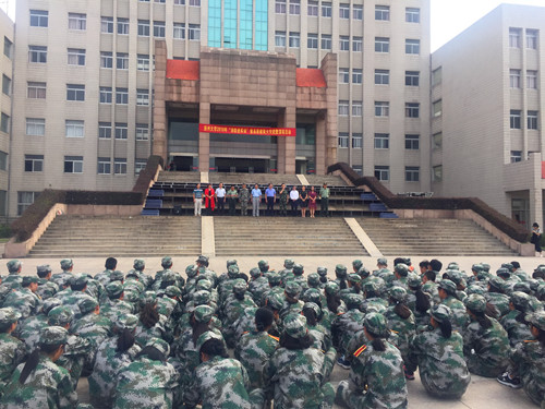 9月12日下午,学校在荷花池校区组织开展“消防进军训”暨高层建筑火灾疏散演练活动。校党委书记姚冠新宣布活动开始。副校长洪涛,扬州市消防支队副支队长金卫出席活动。