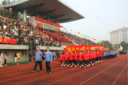 焦新安在开幕词中指出,学校在长期的办学实践中,积累了丰厚的体育文化,形成了良好的体育传统。在历届运动会和各项体育比赛中,广大师生奋力拼搏、突破自我的进取精神,同心同德、精诚合作的团队精神,完美地展现了扬大人担当有为的精神风貌。他希望广大师生员工从现在起,在紧张的学习、工作之余,养成经常锻炼的良好习惯,积极参与,力争上游,把体育运动中蕴含的公平竞争、团队合作、顽强拼搏、坚持不懈、永不放弃的精神,转化为建设高水平研究型大学的不竭动力。