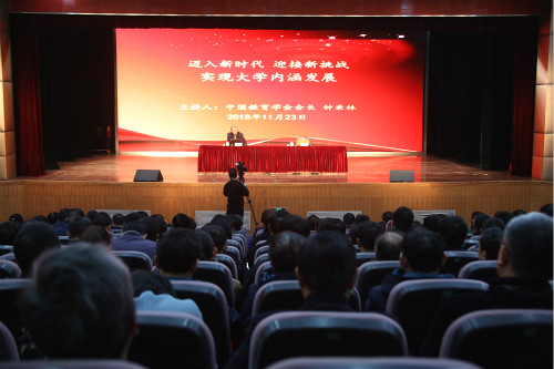姚冠新在主持报告会时指出,此次报告思路开阔、高屋建瓴,充满思辨性、富有哲理性、彰显现实性、蕴含发展性,为高等教育内涵发展的思想再解放、改革再深入、工作再抓实指明了道路、明确了方向,对推进学校的内涵发展具有重要的启发和指导意义。他强调,与会教师要认真领会报告精神,提高站位、扩大视野、转变观念,进一步增强责任意识和发展意识,全面提高教育教学质量和学校综合实力,为早日把学校建设成为高水平研究型大学作出新的贡献。
