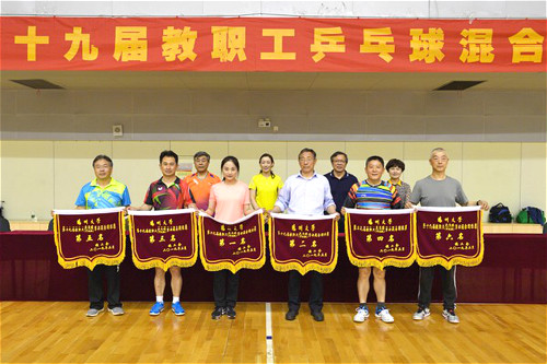 5月25日至26日,第19届教职工乒乓球赛混合团体赛在扬子津校区文体馆举行。经过一天半的激烈角逐,体育学院、信息工程学院、离退休处、图书馆、后勤保障处、附属医院代表队分获甲A组一至六名。