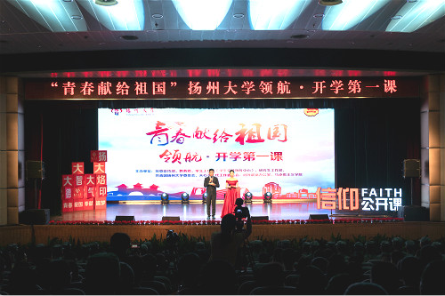 9月10日晚,“青春献给祖国”扬州大学领航•开学第一课活动在荷花池校区大学生活动中心三楼小剧场举行。