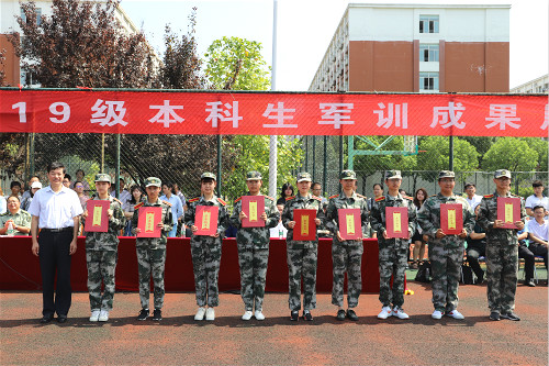 9月15日上午,学校在扬子津校区举行2019级本科生军训成果展示暨表彰会。校党委副书记叶柏森出席活动,并为获奖单位及个人颁奖。