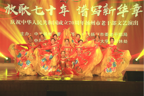 我校与扬州市联合举办“放歌七十年,谱写新华章”老干部文艺演出 9月27日下午,由我校离退休党委、离退休处与中共扬州市委组织部、市委老干部局联合举办的“放歌七十年,谱写新华章”庆祝中华人民共和国成立70周年全市老干部文艺演出在学校大学生活动中心三楼小剧场举行。扬州市委常委、组织部部长江桦,市人大副主任朱妍、副市长何金发、市政协副主席刘流,我校纪委书记周琴应邀出席活动。