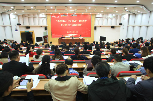 10月14日,学校“不忘初心、牢记使命”主题教育党支部书记专题培训班在荷花池校区逸夫图书馆报告厅举行,就支部书记如何抓好主题教育、推进基层党支部提质增效等开展培训。