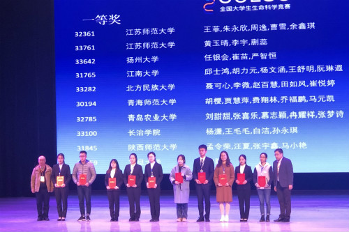 11月8日至10日,由教育部大学生物学课程教学指导委员会、教育部高校生物科学类专业教学指导委员会、教育部高校生物技术与生物工程类专业教学指导委员会等联合举办的第三届全国大学生生命科学竞赛决赛在陕西师范大学落幕。经过激烈角逐,由生物科学与技术学院张龙、韦存虚老师指导,2016级本科生任银会、2017级本科生严智恒的参赛作品《水稻粉质胚乳突变体M37的基因定位及变异分析》获得大赛一等奖。