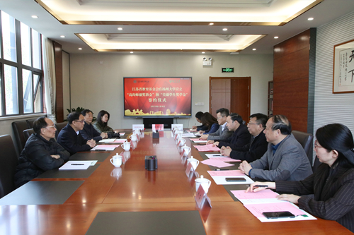 4月8日上午,江苏省教育基金会在我校设立“高尚师德奖教金”和“美德学生奖学金”的签约仪式在荷花池校区校友馆二楼会议室举行。江苏省教育基金会理事长步锦昆、校长焦新安出席签约仪式并讲话,副校长洪涛主持签约仪式并代表学校与省教育基金会签署协议。