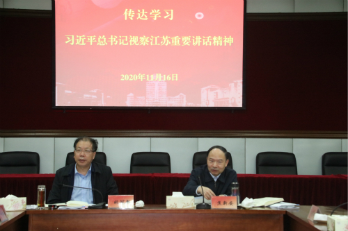 焦新安指出,学习宣传贯彻党的十九届五中全会精神和习近平总书记视察江苏重要讲话和指示精神是学校当前和今后一个时期的首要政治任务,全校上下要进一步提高政治站位,强化政治担当,把贯彻落实全会精神和总书记讲话精神与推进学校改革发展重点工作相结合,以谋划学校“十四五”规划为契机,坚持“四个面向”,主动对接国家发展战略和重大需求,服务地方经济社会发展,积极担负起在人才培养、科学研究、社会服务、文化传承与创新等方面的历史使命。他强调,要继续统筹好疫情防控和事业发展,紧紧抓住新一轮发展机遇,瞄准重大任务,着力做好学科评估、学位点增列、年度综合考核等重点工作,坚守安全稳定底线,全力冲击“双一流”建设。