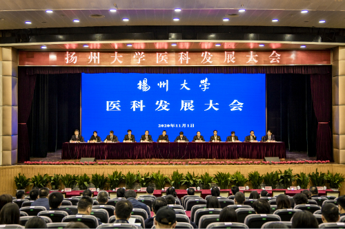 11月1日,学校在荷花池校区大学生活动中心三楼小剧场隆重举行扬州大学医科发展大会。江苏省卫健委副主任、一级巡视员李少冬,校党委书记姚冠新、扬州市副市长余珽出席会议并讲话。校长焦新安作大会工作报告。中国工程院院士、南京医科大学校长沈洪兵应邀作专题报告。校党委副书记叶柏森,副校长黄建晔、陈国宏、洪涛、陈亚平,校纪委书记、监察专员周琴,副校长俞洪亮及校党委常委出席会议。副校长刘巧泉主持会议。
