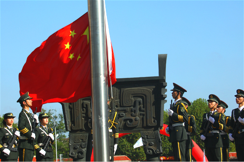 典礼结束前,全场师生起立,以饱满的热情齐唱校歌。
