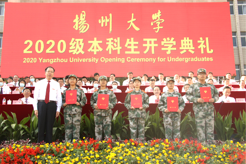 9月27日上午,学校在荷花池校区隆重举行2020级本科生开学典礼。来自全国各地的7900余名新同学欢聚一堂,共同见证成为扬大人的重要时刻。校党委书记姚冠新,校长焦新安,校领导叶柏森、陈国宏、洪涛、俞洪亮、刘巧泉,校党委常委薛小平、张信华,我校杰出校友、中国农业科学院中国水稻研究所博士生导师王克剑等出席典礼。校党委书记姚冠新为优秀本科新生一等奖学金获得者颁奖。校长焦新安发表讲话。校党委副书记叶柏森主持典礼。副校长俞洪亮宣读《扬州大学2020级优秀本科新生奖学金获得者名单》。