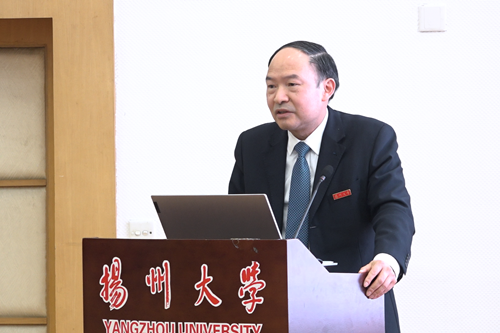焦新安作学校行政领导班子述职报告。他指出,2021年,扬州大学行政领导班子坚持党的全面领导,聚焦“十四五”规划确立的目标任务和年度党政重点工作,团结一心、众志成城,埋头苦干、勇毅笃行,入选江苏高水平大学高峰计划A类建设高校,取得了疫情防控和事业高质量发展“双胜利”,实现了“十四五”开门红,学校综合实力稳居全国百强高校行列并持续攀升。他指出,2021年学校在科技创新能力、学科建设水平、高层次人才规模、服务高质量发展能力、国际交流合作水平综合实力和社会影响力等方面得到显著提升,高质量发展成效显著,为江苏扛起“争当表率、争做示范、走在前列”光荣使命贡献了扬大力量。焦新安从“加强学习实践,进一步提升担当尽职的能力素养”“持续加强领导班子建设,进一步提高办学治校水平”“深入推进依法治校,进一步提升治理体系与治理能力现代化水平”“坚决做好校园疫情防控,进一步维护校园安全稳定”“大力推进改革创新,进一步提升内涵建设水平”“全力服务江苏高质量发展,进一步推动校地融合共赢”“办好民生实事,进一步增强师生获得感和幸福感”“认真履职尽责,当好人民满意的人大代表”“加强作风建设,进一步践行教书育人使命风范”等方面作个人述职报告。
