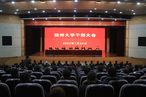 1月24日上午,学校干部大会在荷花池校区大学生活动中心三楼小剧场召开。省委组织部副部长洪浩,省委教育工委副书记苏春海,扬州市委常委、组织部部长焦庆标,省委组织部干部五处处长、一级调研员王本文,省委教育工委组织处处长陈艳,省委组织部干部五处二级调研员李一宁等出席会议。王本文处长宣读了省委决定:焦新安同志任扬州大学党委书记,免去姚冠新同志的扬州大学党委书记、常委、委员职务;丁建宁同志任扬州大学党委委员、常委、副书记、校长,免去焦新安同志的扬州大学校长职务。