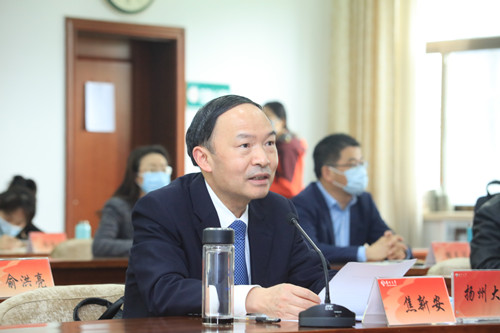焦新安结合实际工作,围绕习近平总书记在两会期间的重要讲话精神、李克强总理《政府工作报告》内容、江苏代表团主要活动和审议情况、《政府工作报告》中关于教育的部署安排等四个方面对大会精神做传达学习。