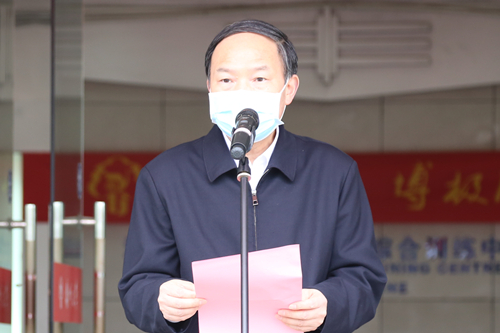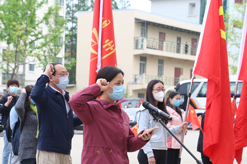 校党委副书记叶柏森宣读出征人员名单。医疗队领队王庆林同志做表态发言。全体出征队员庄重宣誓“‘扬’帆驰援,‘苏’战速决。战疫有我,请党放心。”出征仪式前,学校还针对医护人员组织开展了专门的技能培训。