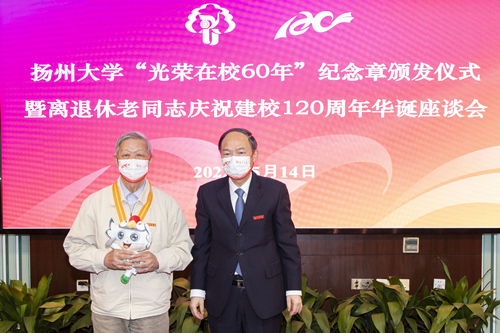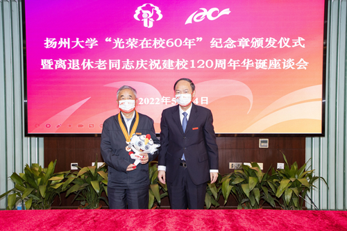 为激励广大教职员工献身学校事业,增强职业尊荣感、自豪感和归属感,培育和践行新时代扬大精神,进一步汇聚服务立德树人、助力高水平研究型大学建设的磅礴力量,学校决定自2022年起设立“光荣在校60年”纪念章,颁发对象为截至当年5月19日在我校学习、工作、退休生活年限累计达60年,且一贯表现良好的健在离退休教职员工,本年度共有329位老同志获此殊荣。