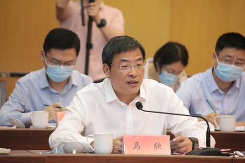 马欣认真听取了学校内涵提升、校园安全、校企改革等方面的工作汇报,对学校近年来取得的突出成绩给予充分肯定,并向学校建校120周年表示祝贺。他表示,扬州大学历史底蕴深,有着优良的办学传统;改革力度大,综合实力显著提升;学校服务成效好,为经济社会发展作出了重要贡献。
