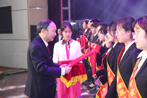 丁建宁代表学校党委和行政,向获得表彰的全体同学,表示热烈的祝贺。他希望大学生要志存高远、砥砺前行,锤炼勇于担当的品格;勤学善思、练就本领,弘扬格物致知的精神;开拓创新、服务国家,保持奋楫笃行的干劲。丁建宁指出,全体同学要以获奖同学为榜样,进一步增强知识更新的紧迫感,如饥似渴地学习,不断提高与时代发展要求相适应的素质和能力。他希望全体扬大学子将初心融入灵魂,把使命扛在肩上,坚定信仰、坚守初心,功崇惟志、业广惟勤,奋力承继百廿荣光、续写新的辉煌!