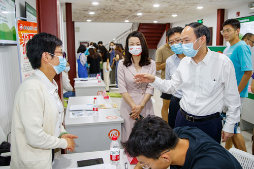 6月7日上午,学校在扬子津校区智慧就业市场举办了扬州大学2022年“百廿展芳华 冲刺毕业季”专场系列招聘会暨“‘就’在扬州 ‘职’等你来”2022届在扬高校毕业生招聘(扬州大学)专场活动。扬州市委书记张宝娟,市委常委、秘书长、副市长赵庆红,副市长余珽,校党委书记焦新安、校党委副书记叶柏森出席活动。