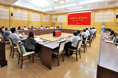 6月7日下午,扬州市总工会党组书记、副主席蒋元峰,副主席洪慧娟、陈维权、韩士军、杨浩一行来我校调研指导工会工作。市总工会有关部门负责人、扬州市各产业工会主任随同调研。副校长周如军出席活动。
