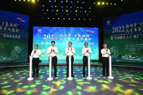 6月10日,2022年扬州市“才聚扬城”大学生空中双选会暨“扬州夏日·人才‘盛汇’”活动启动仪式在扬州广电演播大厅举行,校长丁建宁出席仪式并致辞。中国工程院院士、华东师范大学校长钱旭红,东南大学党委副书记邢纪红通过视频连线方式致辞,扬州市委常委、组织部部长焦庆标,副市长余珽等出席仪式。