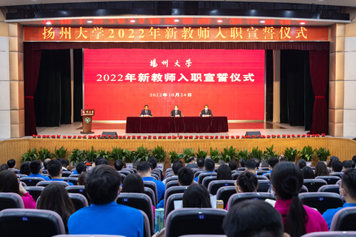 10月24日下午,学校在荷花池校区大学生活动中心三楼小剧场隆重举行2022年新教师入职宣誓仪式暨岗前培训主题报告会。校党委书记焦新安出席会议并讲话,校长丁建宁为全体新入职教师作岗前培训主题报告。校党委副书记周如军主持会议。