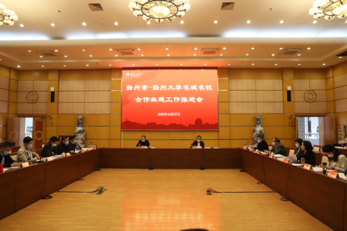 丁建宁指出,本次名城名校共建项目由双方主要领导经多次协商后确定,基于高度的信任,拥有高度的共识,也获得了高度的支持。丁建宁强调,要抢抓时机狠抓落实,主动对接政府相关职能部门,寻求最大共识;要超前谋划,重视任务落实的质量,以时不我待的紧迫感加快建设速度,尽快做出实效,助力扬州产业升级;要加强宣传,及时通报重要项目建设进展,充分展现内涵丰富、亮点纷呈的合作成效;要认真总结合作经验,加强推进统筹力度,梳理和打通合作项目中的难点、痛点、堵点,进一步推进重点工作。