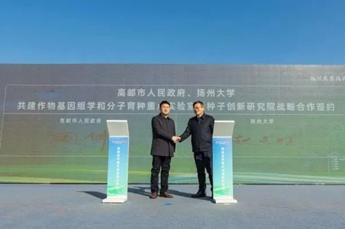 仪式上,蔡恒、韩骅为“农业农村部畜禽养殖标准化示范场”揭牌;张钧、余珽为“扬州大学乡村振兴培训学院”揭牌;丁建宁、田醒民签订《新一轮深化合作共建扬州大学现代农业科教示范园区(高邮)协议》;赵文明与高邮市委常委、卸甲镇党委书记、国家农科园党工委书记周伟共同签订《江苏省作物基因组学和分子育种重点实验室暨扬州大学(高邮)种子创新研究院战略合作协议》。