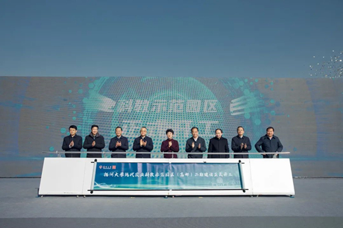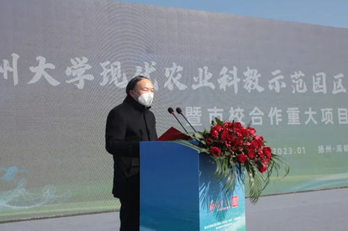 1月8日,扬州大学现代农业科教示范园区(高邮)二期建设开工暨市校合作重大项目签约仪式在扬州国家农业科技园区举行。扬州市委书记张宝娟,省农业农村厅一级巡视员蔡恒,省住房和城乡建设厅副厅长张钧,扬州市委副书记韩骅,扬州市副市长余珽,校党委书记焦新安,校长丁建宁,高邮市委书记张利,高邮市市长田醒民,副校长刘巧泉、赵文明、王承堂,校纪委书记、派驻监察专员邱庆峰,副校长韩杰、蔡颖蔚等出席活动。校党委副书记周如军主持仪式。