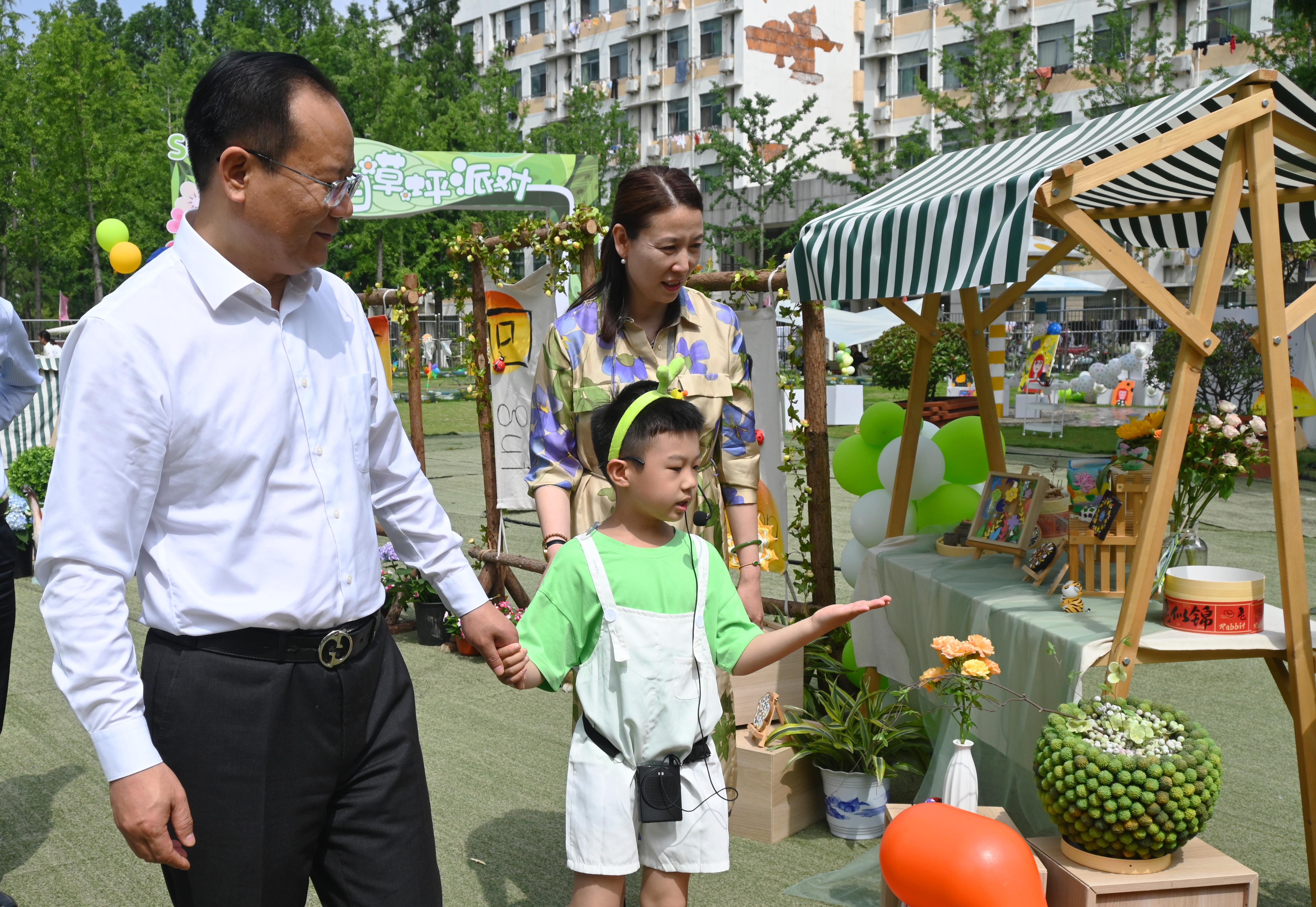 三所幼儿园节日氛围浓郁,活动精彩纷呈。丁建宁首先来到第一幼儿园,听取关于幼儿园课程文化建设的汇报,观看幼儿美术作品展和节目表演,并与孩子们亲切互动。在第二幼儿园,丁建宁观看幼儿水上秀,为幼儿水上竞赛项目击鼓开场,并参与现场火箭发射活动。在第三幼儿园,丁建宁给幼儿送上节日礼物,并为“扬州市高品质教育建设单位”揭牌。