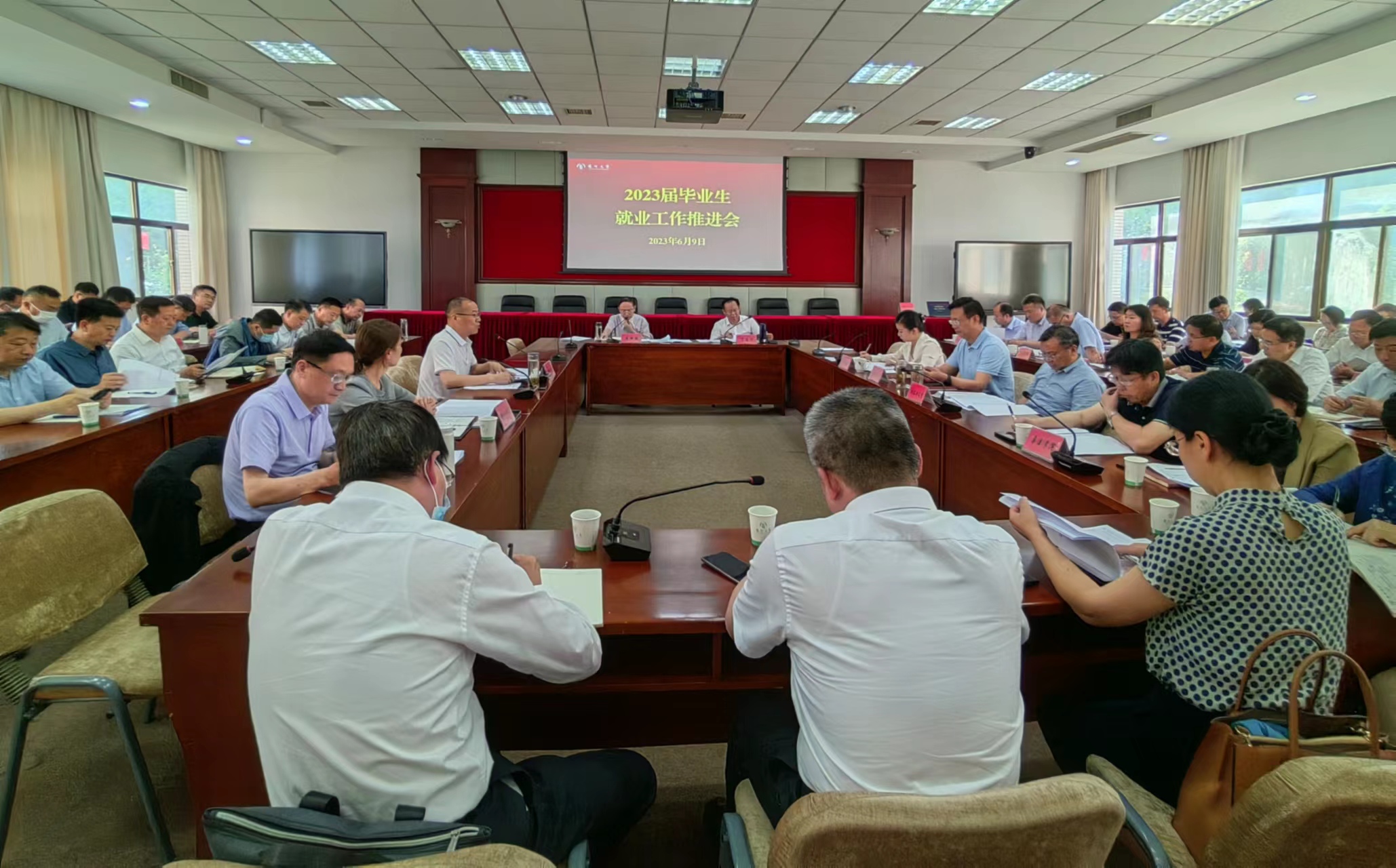 6月9日,学校召开2023届毕业生就业工作推进会。校党委书记焦新安、校长丁建宁出席会议并讲话。副校长蔡颖蔚主持会议。