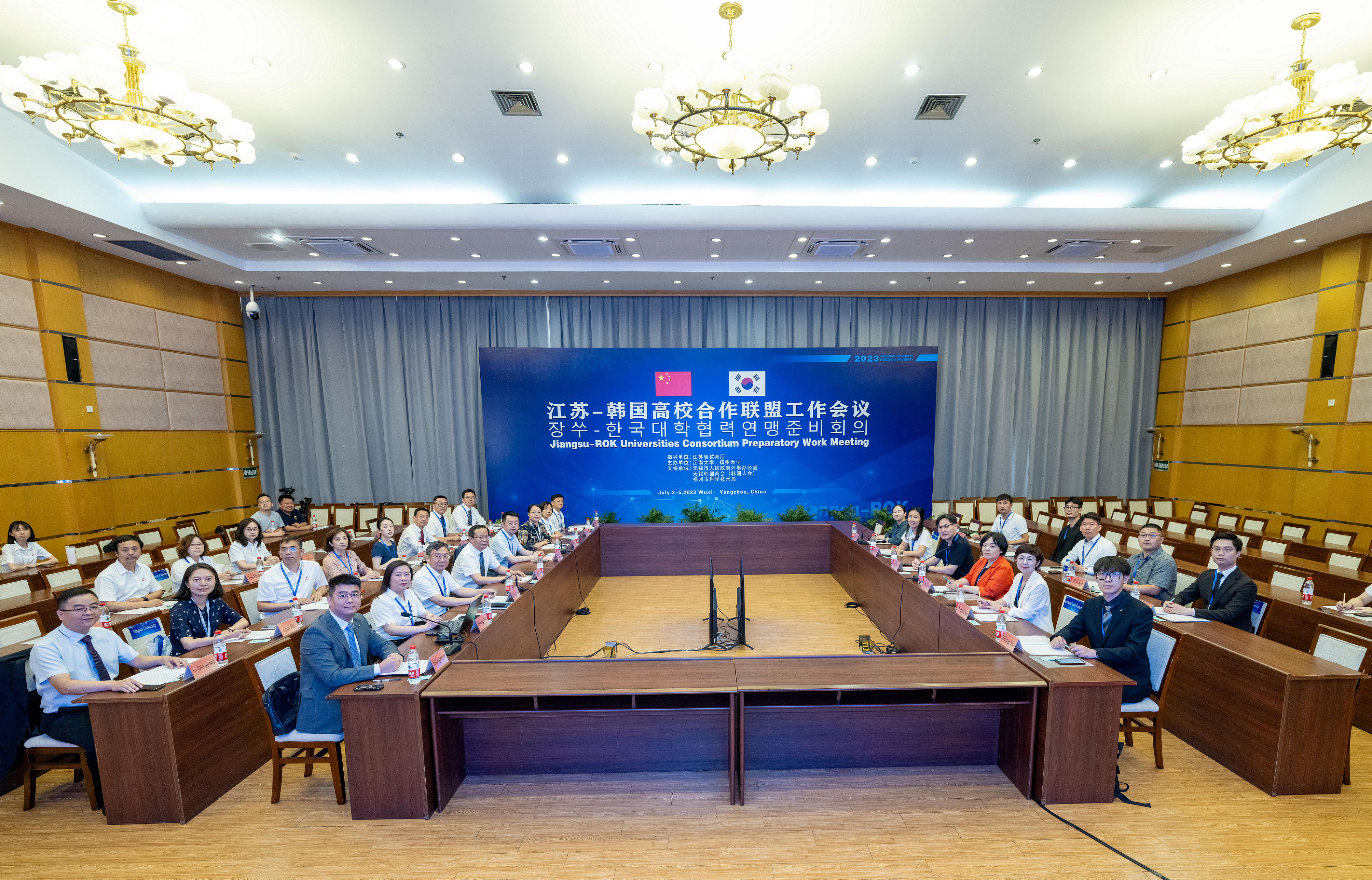 苏韩双方高校代表,扬州市科技局负责人,我校校办、社合处、国际处、化工学院、信息学院、医学院、海外学院负责人参加会议。