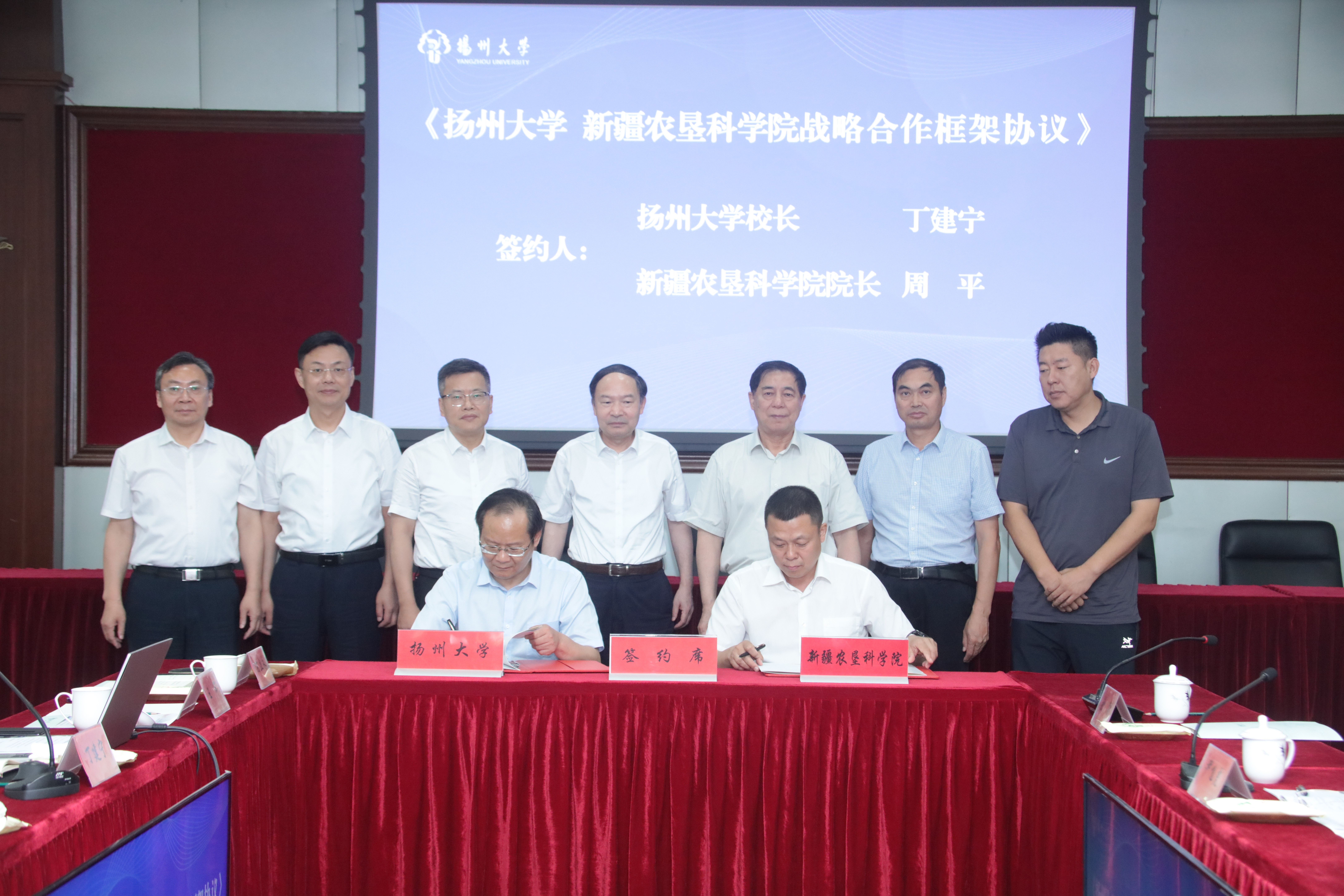仪式上,丁建宁、周平共同签署了《扬州大学-新疆农垦科学院战略合作框架协议书》。